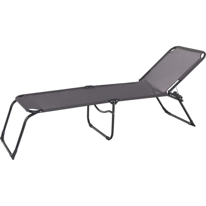 Градински шезлонг от стомана и ПВЦ текстилен в тъмносив цвят с регулируема позиция за облягане