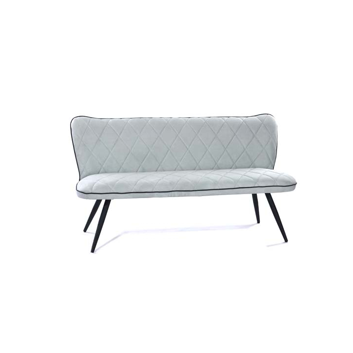 Елегантна 3-местна трапезна пейка с луксозна дамаска с кант по периферията с размери Ш:160/Д:65/В:88 см. Подходящо обзавеждане, както за трапезарията така и за дневната. Моделът предлага завиден комфорт, продиктуван от висококачествената обемна пяна под дамаската. Посредством декоративни шевове дамаската е стилно моделирана на ромбове, основен дизайнерски акцент в продукта. Друга особеност на продукта са овалните черни крака, здраво фиксирани към седалката, монтирани с малък наклон.