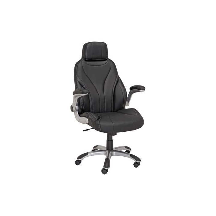 Мениджърски офис стол с ергономична седалка с размери Ш:70/Д:78/В:115.5-123 см. Със своята практичност и удобство моделът е удачно обзавеждане за управленски и ръководни позиции. Притежава всичко необходимо за комфортен и пълноценен работен процес. Седалката е тапицирана с естествена кожа, като единствено гърбът на стола е облечен с еко кожа в черен цвят. Рамката на модела е здрава и стабилна поставена на пет двойни колелца за бързо придвижване във всички посоки. Притежава газов амортисьор за регулиране на височината от 46 см до 54 см, както и въртяща се седалка на 360°.