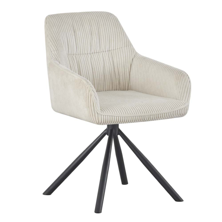 Бежов трапезен стол с подлакътници и въртящ механизъм, размери: 55/62/83 см