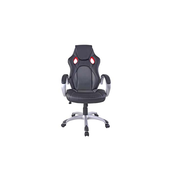 Офис стол с регулируема височина с размери Ш:63/Д:67.5/В:110-120 см. Моделът притежава дизайнерска ергономична седалка тапицирана с еко кожа, както и удобни подлакътници за пълен релакс. Има възможност да променя своята височина от 49 см до 59 см, както и да се люлее чрез ТИЛТ механизъм. Посредством пет двойни колелца може да се придвижва лесно и бързо във всички посоки за заемането на най-удобната работна позиция. Седалката на стола може да се върти на 360°, което удобство го прави особено предпочитан за обзавеждане на офиси, търговски площи, но също така и за дома.