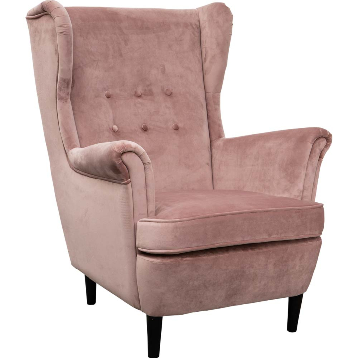 Класически фотьойл с висококачествена кадифена дамаска и размери Ш:83/Д:98/В:100 см. Той е чудесен акцент за дневната, трапезарията или спалнята. Отличава се с изключителен комфорт и стилен дизайн. Кадифената дамаска е приятна на допир, а седалката и облегалката с пълнеж от пяна със средна твърдост при седене, са много удобни. Седалната възглавница със стилен кант е здраво прикрепена към основата на фотьойла с велкро лепенка. Подлакътниците също са омекотени с пълнеж от пяна, за максимален комфорт при седене. Фотьойлът е с облечен гръб, което предоставя възможност да бъде поставен почти навсякъде в помещението. Има 4 конусовидни масивни крачета в черен цвят.
