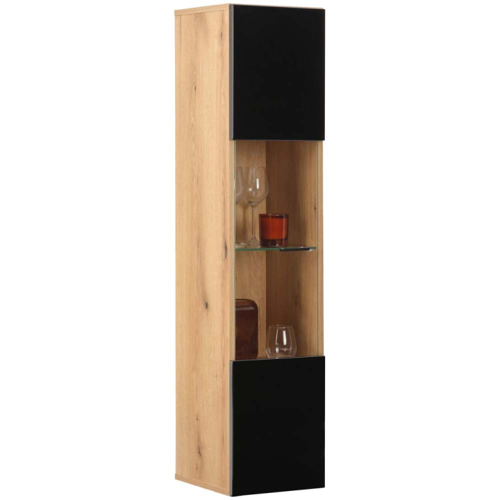Стенната витрина Отис, предлага изискан дизайн и практичност, тя е подходящо решение за съвременния интериор. Комбинацията от черен цвят и дъб ево придава елегантно излъчване, подходящо за различни стилове на обзавеждане.