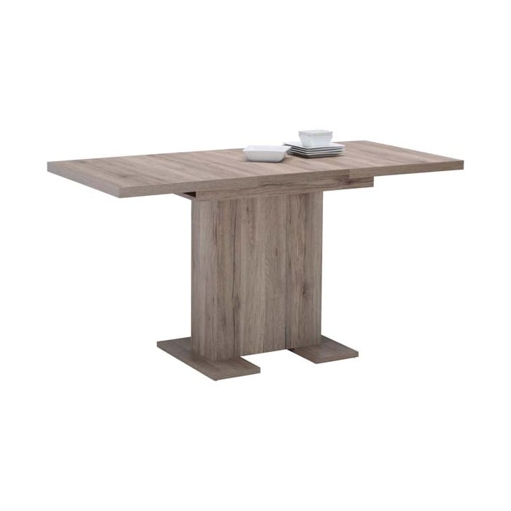 Модерна разтегателна трапезна маса с размери Ш:110-150/Д:70/В:78.1 см. Със своята нестандартна форма и конструкция със сигурност ще привлича вниманието на всички в помещението. Моделът притежава синхронен механизъм за разтягане, като масата може да променя своята ширина от 110 см до 150 см, с капацитет до 6 човека.