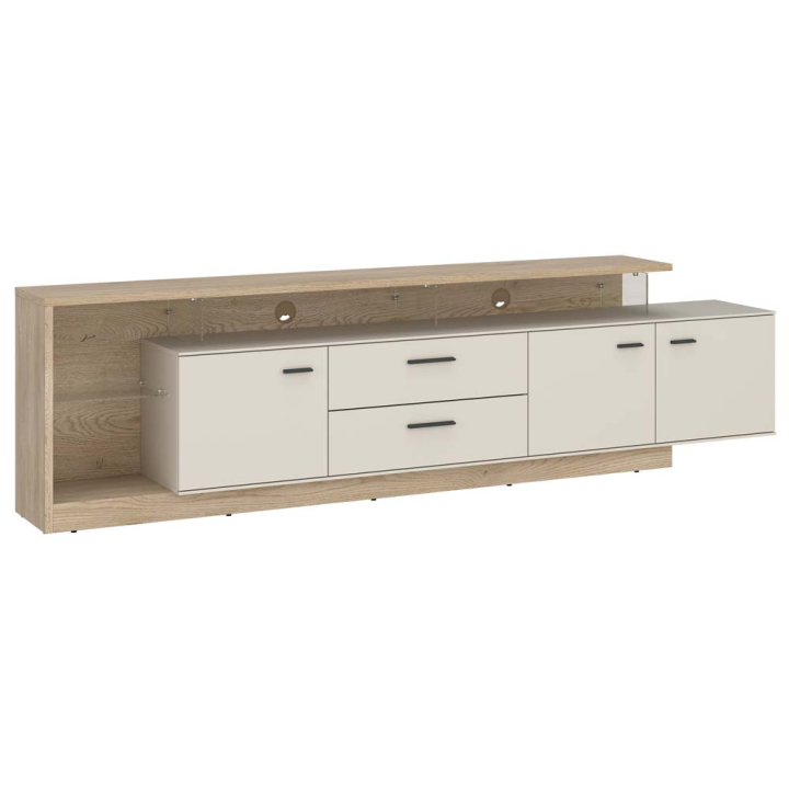 ТВ шкаф Лагуна с 3 врати и 2 чекмеджета в декори дъб и кашмир, размери: 236,4/40/65,5 см