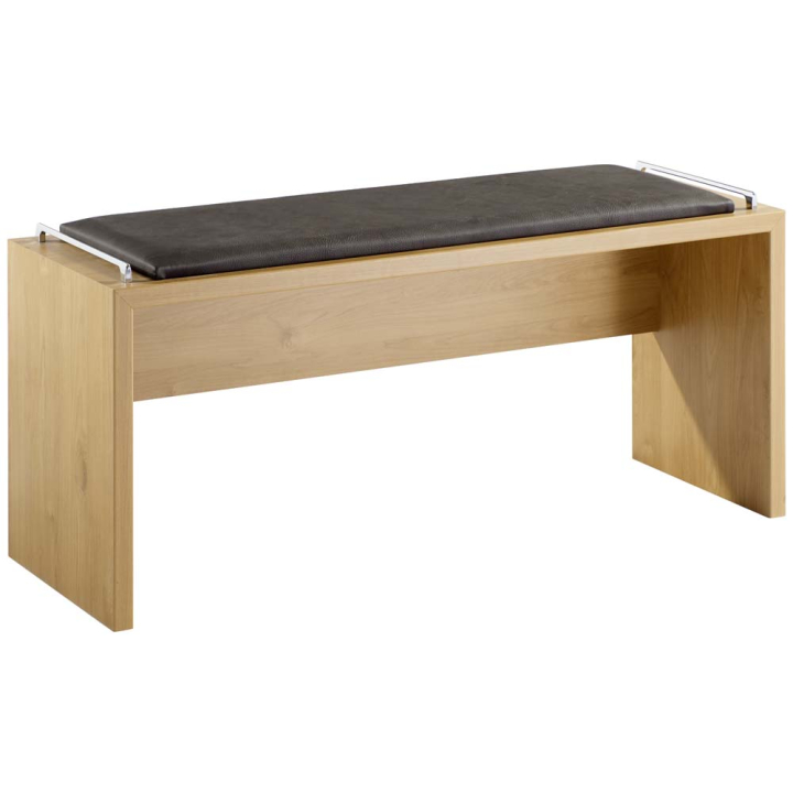 Моделът е изработен с внимание към детайла, използвайки висококачествени материали като ПДЧ, еко кожа и дъбов фурнир. Това е практично решение за обзавеждане на спалнята, което ще бъде надеждно и удобно за дълги години, поставено до двойното легло. Пейката разполага с комфортна седалка, тапицирана с еко кожа, която е лесна за поддръжка и почистване.