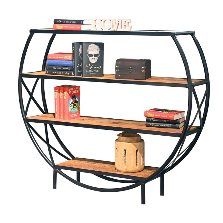 Състои се от 4 рафта от масивна мангова дървесина в естествен цвят и метална