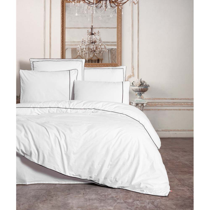 Луксозен спален комплект от 6 части в бял цвят - 100% сатениран памук, 82 бр. нишки/см2
