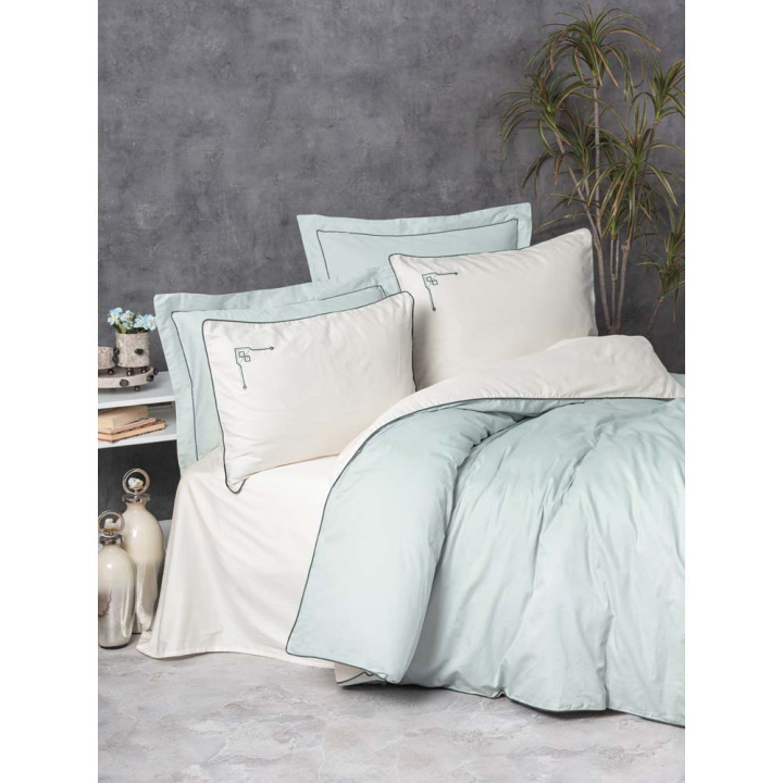 Луксозен спален комплект от 6 части в цвят мента (тюркоаз) - 100% сатениран памук, 300 ТС