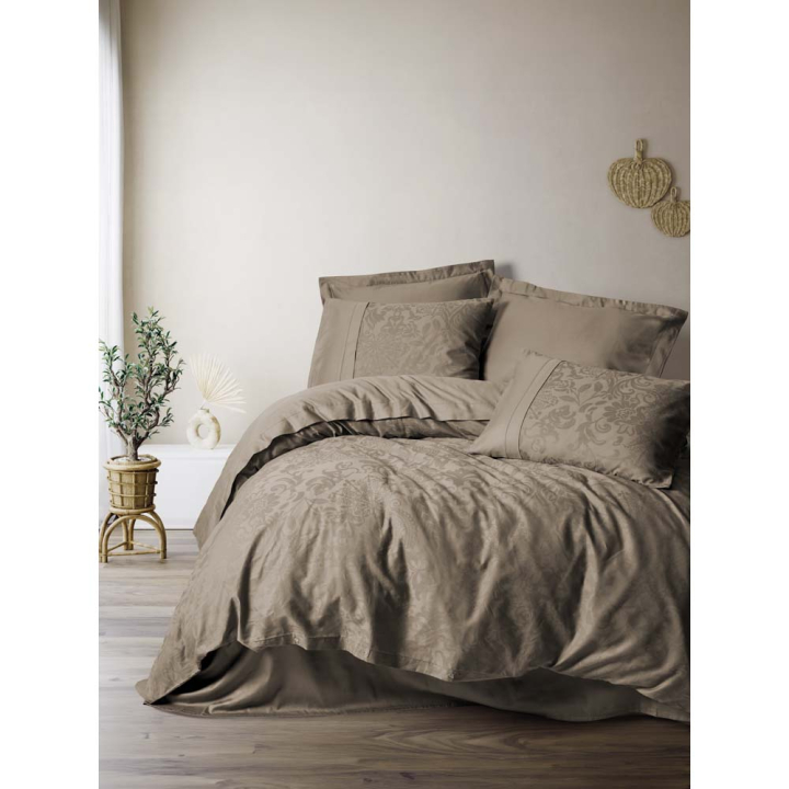 Луксозен спален комплект от 6 части в бежов цвят - 100% сатениран памук жакард, 210 ТС