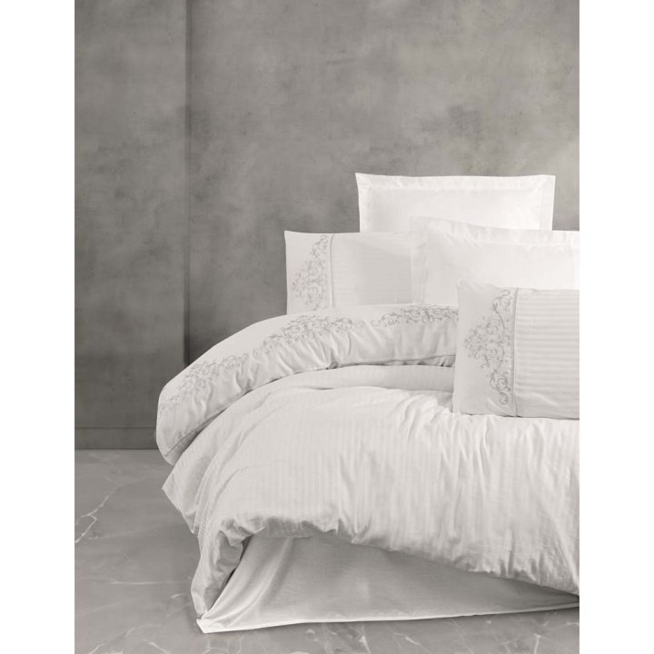 Луксозен спален комплект от 6 части в бял цвят - 100% сатениран памук, 210 ТС