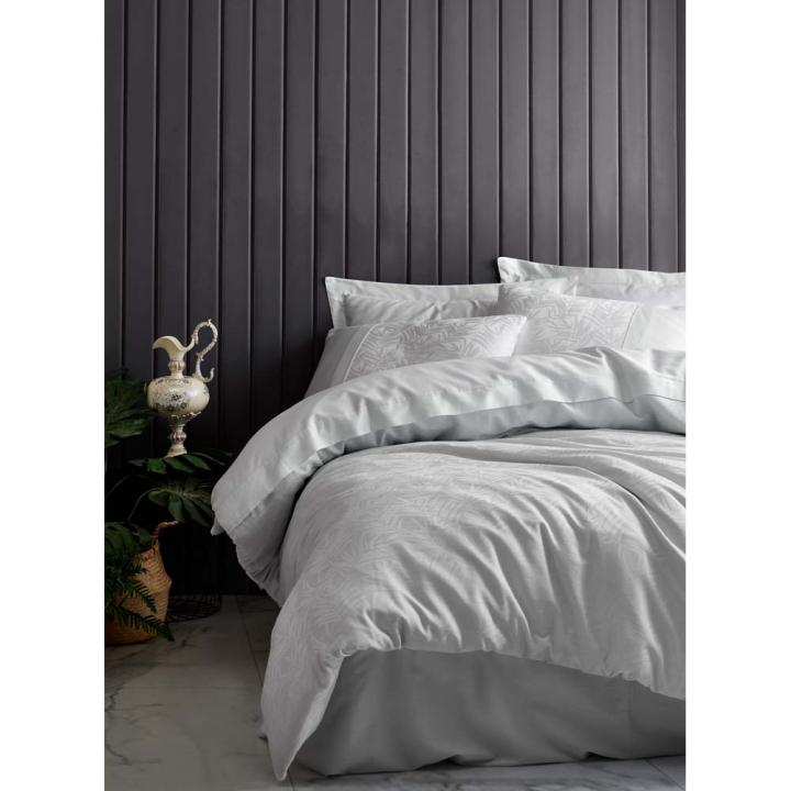 Луксозен спален комплект в сив цвят с дискретна декорация, 100% сатениран памук, 6 части