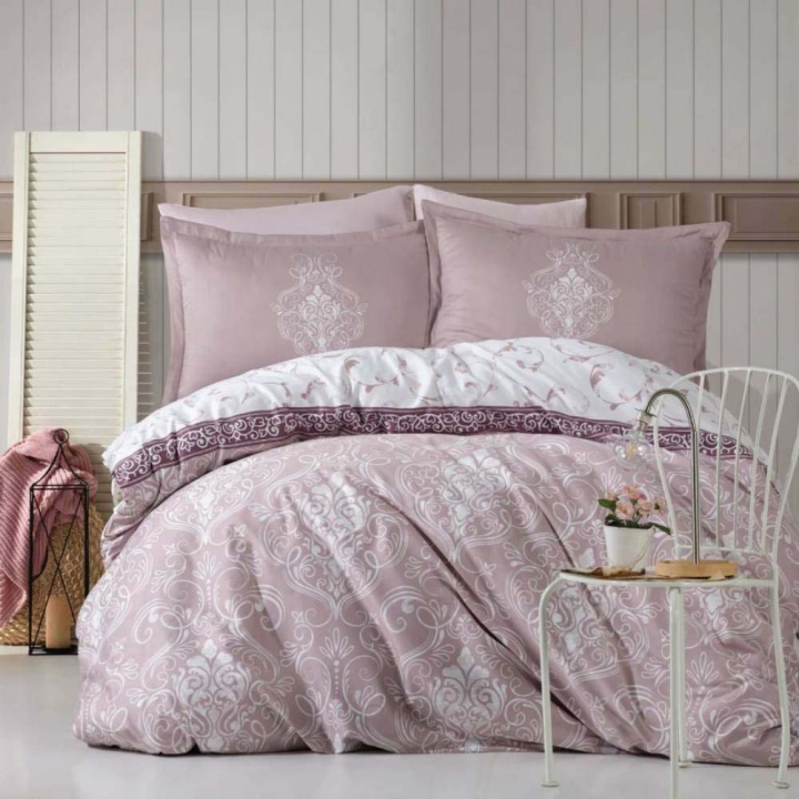 Луксозен спален комплект изработен от 100% Сатениран памук; 210 нишки. Машинно пране до 30 градуса. Спалното бельо от памучен сатен е най-високият клас памучно бельо. Сатенираният памук е изтъкан по начина на тъкане на коприната. * Материята е издръжлива, гладка и фина на усещане. Важно предимство на бельото от памучен сатен е, че е по-лесно за гладене и съхне бързо. Памучният сатен създава усещане за топлота през студените нощи и хладина през топлите. Перфектно поема влагата