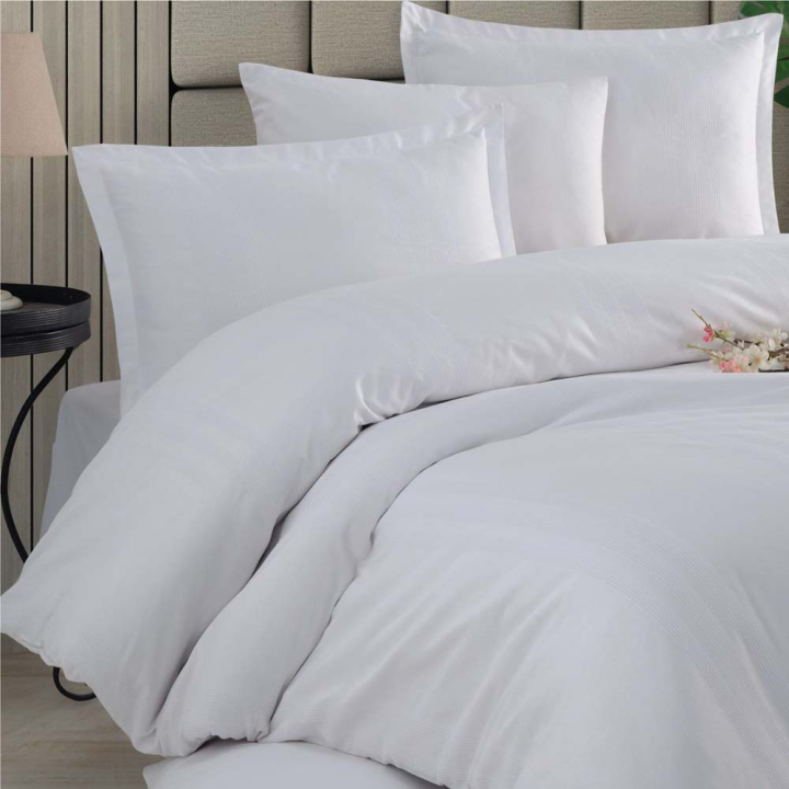 Спален комплект от 4 части в бял цвят с дискретно райе, 100% памук ранфорс