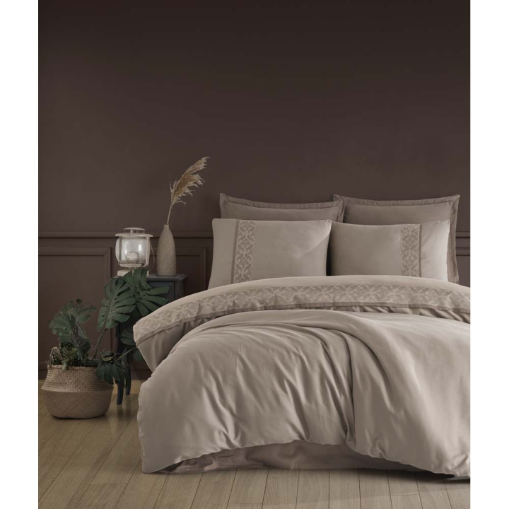 Спален комплект от 4 части в бежов цвят с елегантна бродерия, 100% памук ранфорс