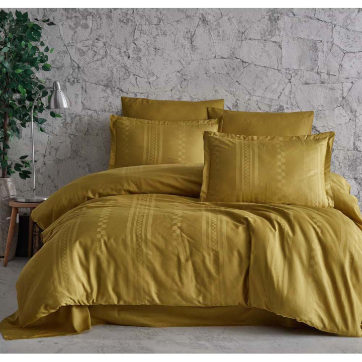 Луксозен спален комплект от 4 части в жълт цвят (горчица), 100% сатениран памук