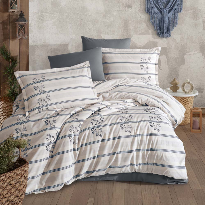 Комплектът е семпъл и стилен. С нежна бродерия с цветя, той внася комфорт и уют в спалнята. Вписва се идеално във всеки интериор. А високото качество на текстила ще съхрани дълготрайно неговата структура, както и първоначалните свежи нюанси на цветовете.