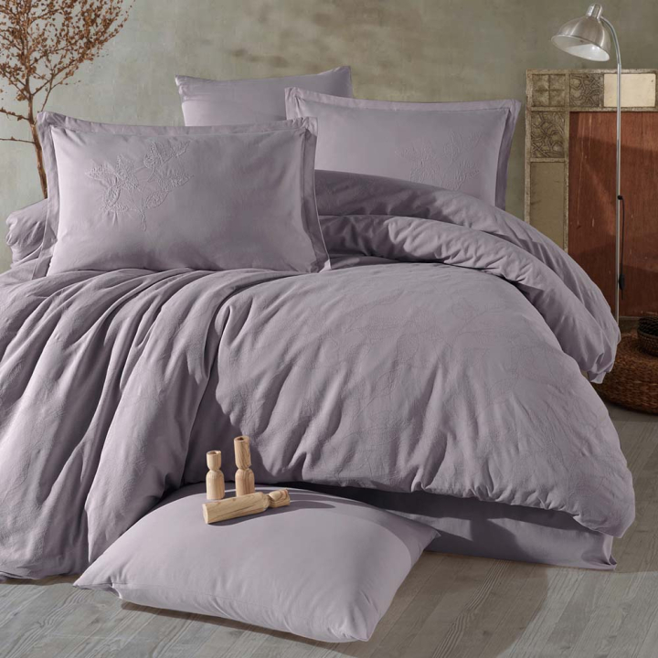 Семпъл спален комплект от 4 части в лилав цвят, 100% памук Ранфорс