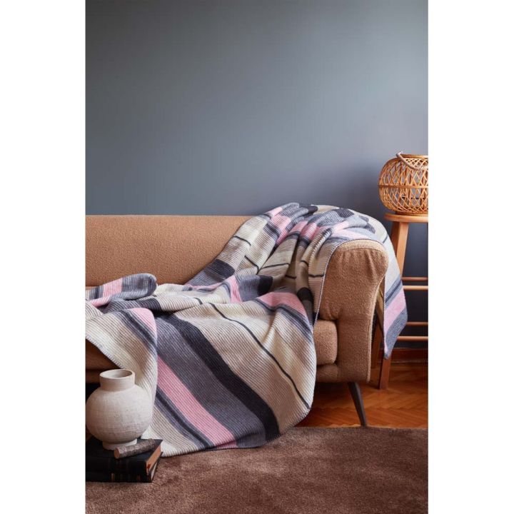 Меко и нежно одеяло с високо съдържание на памук, подходящо за употреба по всяко време от годината. Дизайнът е модерен, в красиви успокояващи цветове, като чудесно се адаптира в интериори с разнообразен стил. Оставете одеялото небрежно върху дивана или върху някой от подлакътниците на фотьойла и се насладете на уюта, който то създава. Семпла хармония, получена от функционален аксесоар с декоративна стойност.