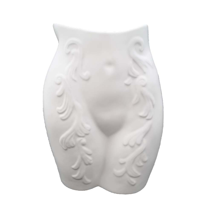 Бяла керамична ваза във форма на детайл от женска фигура, 18.5/15/31 см.