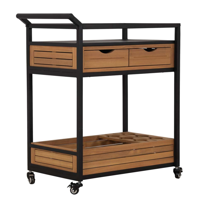 Стилна и практична за всяко събитие на двора. Добавете елегантност и функционалност към вашето външно пространство с тази градинска помощна масичка, изработена от висококачествена акациева дървесина и метал. Съчетавайки модерен индустриален стил с топлината на естественото дърво, този модел е идеален за сервиране на храни и напитки и съхранение на аксесоари за градинското ви парти.
