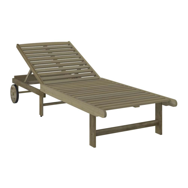 Градински шезлонг с конструкция от акациева дървесина, две колела в задната част и функция за регулиране на облегалката