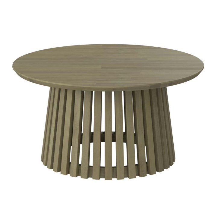 Градинската маса с кръгъл плот е мултифункционална, тъй като може да се използва не само за основна, но и за помощна. Моделът е нисък, подходящ за поставяне на напитки, леки закуски или аксесоари към сервирането на открито. Изключително стабилна и устойчива е, благодарение на масивната дървесина.