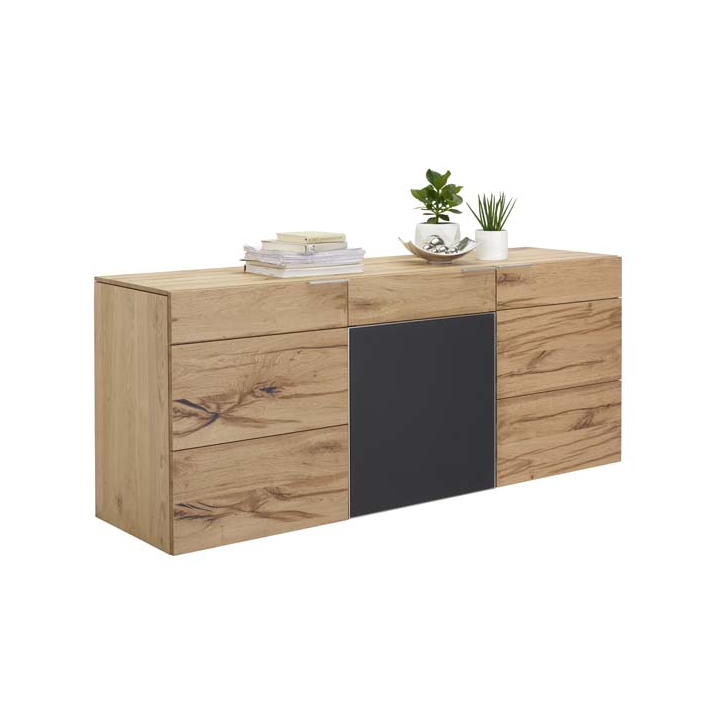 Комодът е част от серия мебели, изработени от дъбова дървесина с подчертана текстура, която включва чворове и пукнатини, създаващи усещане за уют и естествена топлина. Серията предлага разнообразие от решения за дневната – холна секция, трапезна маса, пейка, столове, холна маса, бюфет и витрина.