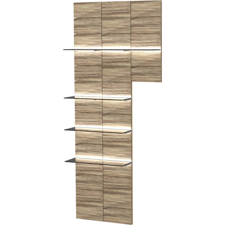 Стенен панел с рафтове Ви-Монтанара от див дъб масив с LED осветление, размери: 95,5/28/224 см