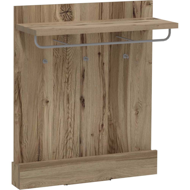 Пано Ви-Алпин със закачалки, рафтове и клапваща врата с включено осветление от състарен дъб масив, размери: 96/42,5/194 см