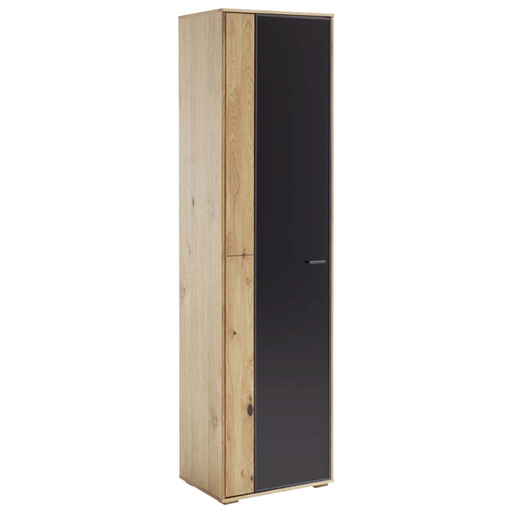 Витрината разполага с врата на панти с плавно затваряне и стъклен панел, зад който са разположени 4 регулируеми рафта, образуващи 5 удобни ниши. Тя е идеалното решение за съхранение и излагане на ценни предмети, аксесоари или декоративни елементи.