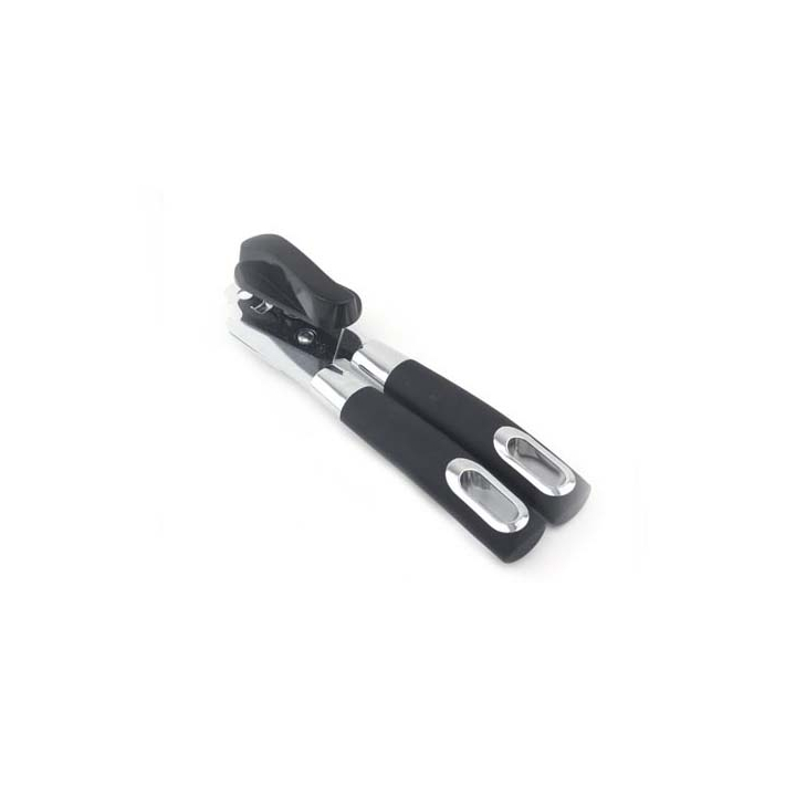 Отварачка за консерви от неръждаема стомана с черни ергономични дръжки и отвори за закачане, 21.20 см
