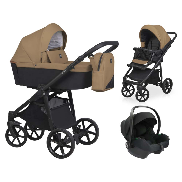 TUVI BEIGE разполага с кош за съхранение и чанта за памперси за максимално удобство на всеки родител.