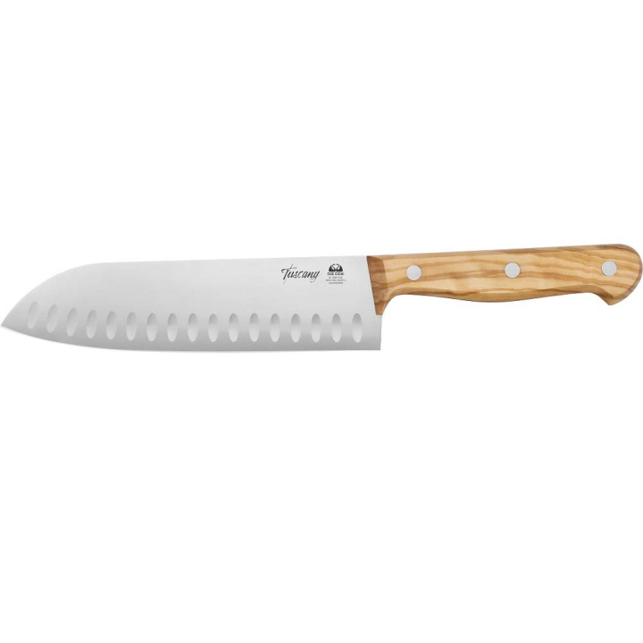 Нож Сантоку от серия Тоскана - Due Cigni с дължина на острието 18 см и дръжка от маслиново дърво
