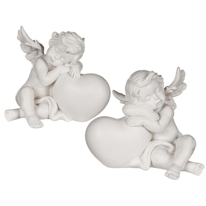 КОЛЕДНА СТАТУЕТКА СПЯЩО АНГЕЛЧЕ ВЪРХУ СЪРЦЕ 10/6.5/9.5 СМ АСОРТИ