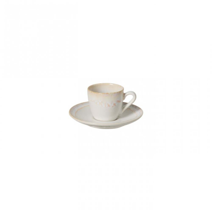TAORMINA WHITE керамична чаша за кафе с чинийка, с фина глазура в бяло и бежово, 100 мл