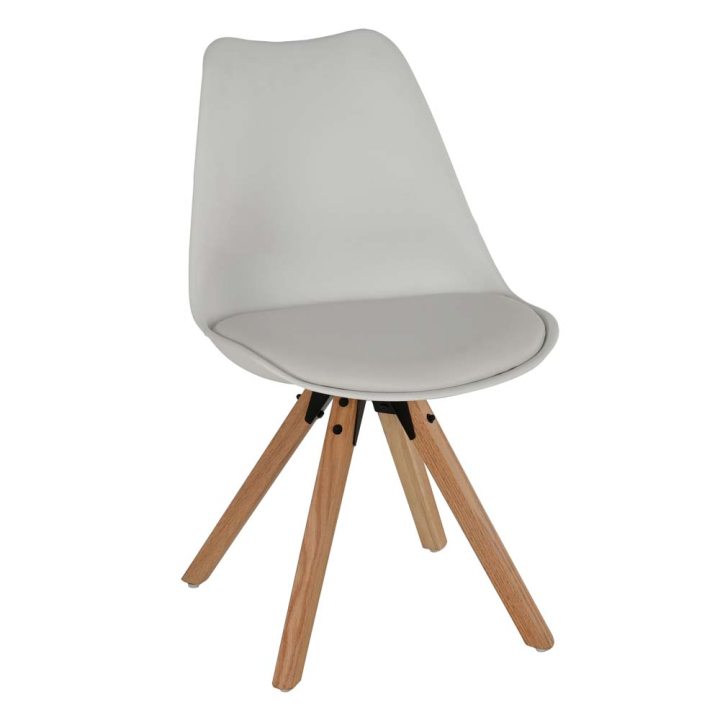 Трапезен стол Армин, изработен в съчетание от масив и еко кожа в бял цвят, размери: 48/57/81 см