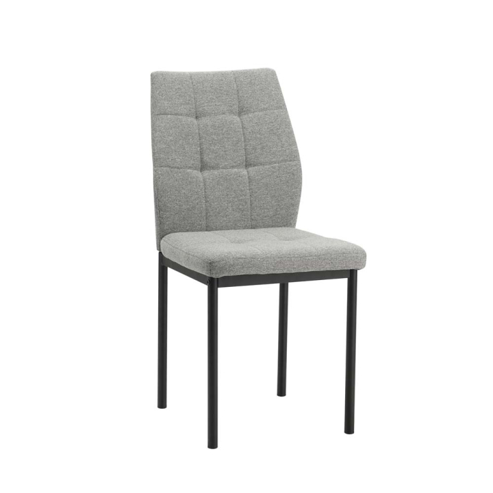 Тапициран трапезен стол с размери Ш:44/Д:56/В:90 см. Притежава характерен дизайн, с капитонирана седалка и облегалка стилно моделирана на квадрати посредством декоративни шевове. Моделът е удобен с височина на седене 44 см, и максимална товароносимост до 140 кг, като поставен до трапезната маса семейните закуски, обеди и вечери ще минават неусетно. Посредством цип дамаската може да бъде свалена за почистване. В зависимост от интериора и вашите предпочитания може да избирате тапицерията да бъде в тъмносив и светлосив цвят.