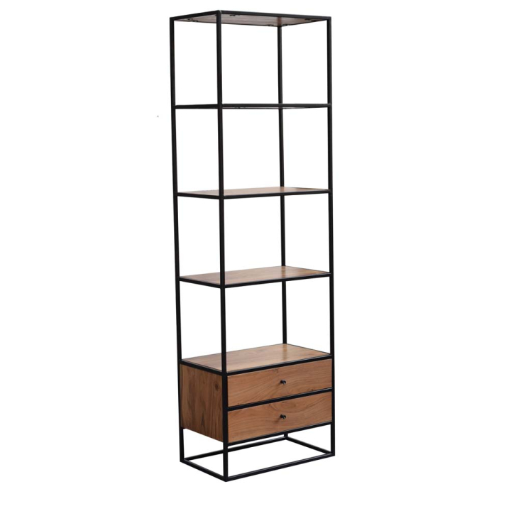 Атрактивна и модерна висока стояща етажерка, подходяща както за дома, така и за офиса или друго обществено пространство. Функционалното и разпределение и изчистения дизайн в индустриален стил ще я превърнат в любима част от интериора. Изработена е от метал в черен цвят и масивна акациева дървесина. Предлага се сглобена. Размери 58/35/190 h см.