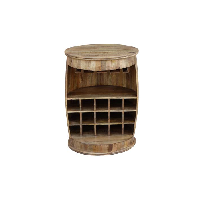 Уникалната бар маса от мангово дърво е прекрасен акцент в Вашата дневна или кухня. Едно интересно многофункционално предложение в рустик стил. На специално предвидено място, точно под плота, може да подредите така необходимите стъклени чаши. Останалата част е предвидена за любимите Ви вина. Външният вид на бар масата от масивно дърво, наподобяващ емблематичното буре за вино, би впечатлило всеки един, дошъл да сподели чаша вино с Вас.