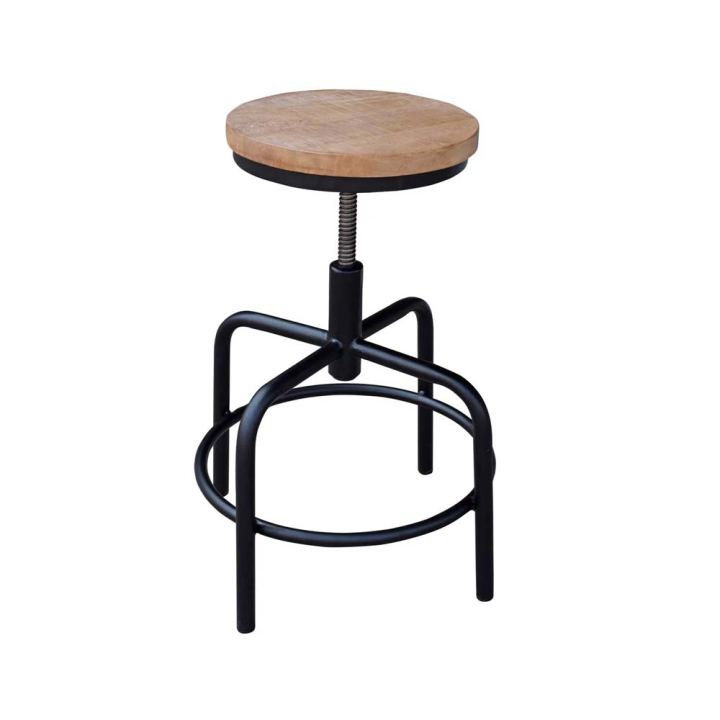 Кръглата седалка от мангово дърво допълва контрастната комбинация метал-дърво и прави визията на стола изключително модерна.