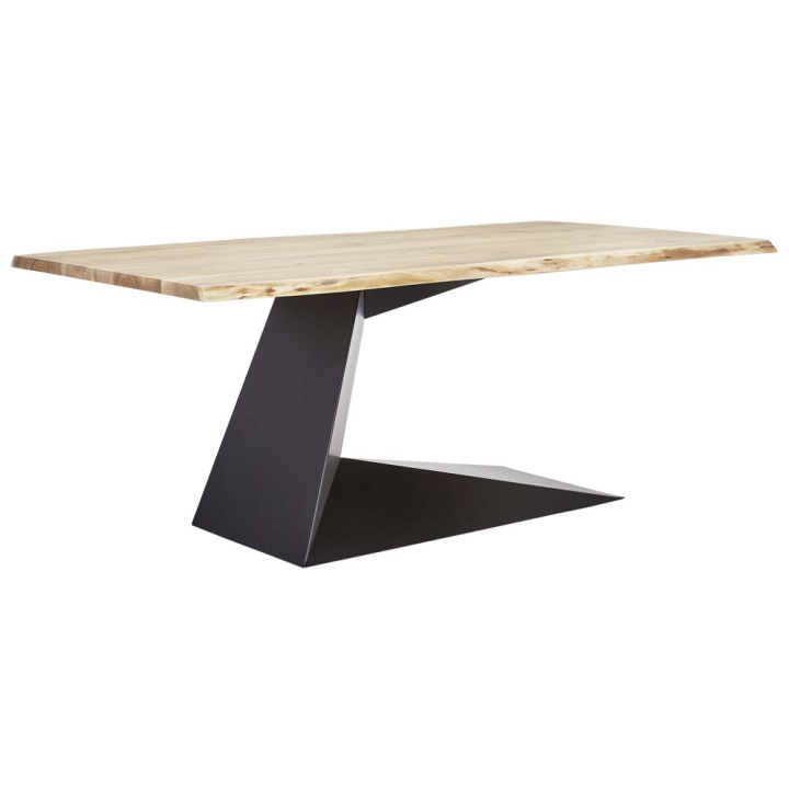Трапезна маса, изработена от масивно акациево дърво в съчетание с черна метална основа, размери: 200/100/76 см