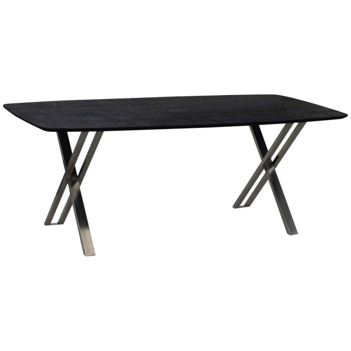 Масата притежава изискан дизайн в черен цвят, който ще прилегне елегантно към интериора във вашата трапезария. Плотът е с дебелина 25 мм, с изработка от импрегнирано мангово дърво, крачетата са създадени от никелирано желязо, балансиращи цялостната конструкция с максималната товароносимост до 80 кг.