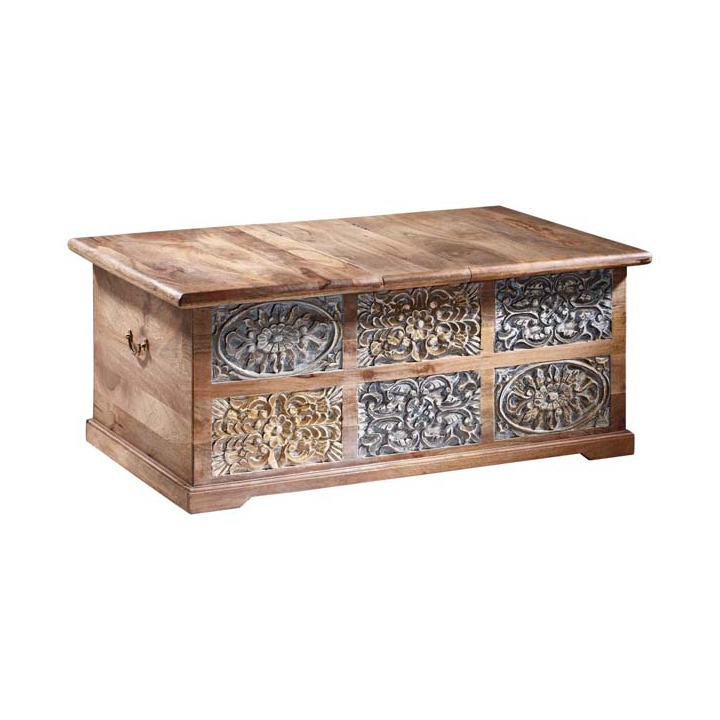 Маса от мангово дърво, съчетаващ колониален стил и етно мотиви. Колониалният стил се характеризира с тъмното байцано дърво и светли, естествени декоративни акценти. Резбата с етно дизайн и флоралните орнаменти носят усещането за присъствие на чуждите страни директно в дома Ви.