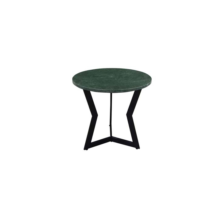 Кръгла холна маса с размери Ш:45/Д:45/В:52 см. Плотът е произведен от зелен мрамор, който впечатлява със своята екзотична текстура. Зеленият цвят вдъхновява и ни свързва с природата, който е и символ на благополучие. Масата привлича вниманието и със своята метална конструкция, която се състои от 3 обединени в основата крака с протектори щадящи пода. Моделът е с капацитет да настани около 4 човека и максимална товароносимост на плота до 30 кг.