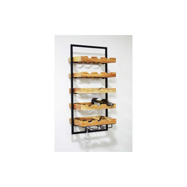 СТЕННА ЕТАЖЕРКА ЗА БУТИЛКИ ОТ МАСИВ И МЕТАЛ ВАЛО 35/25/75 СМ AMBIA HOME 88553090016