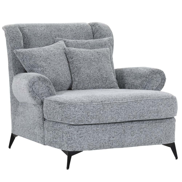 Светлосив фотьойл Кънтри с подлакътници и 3 декоративни възглавници, размери: 125/137/102 см