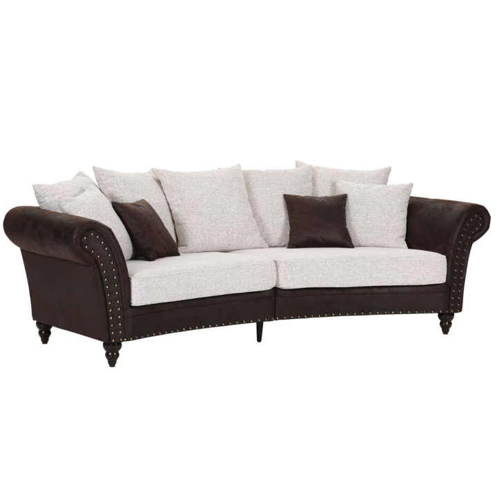 Триместен диван Кънтри в кафяво и бежово с включени 5 облегални и 4 декоративни възглавници, размери: 273/125/79/50 см