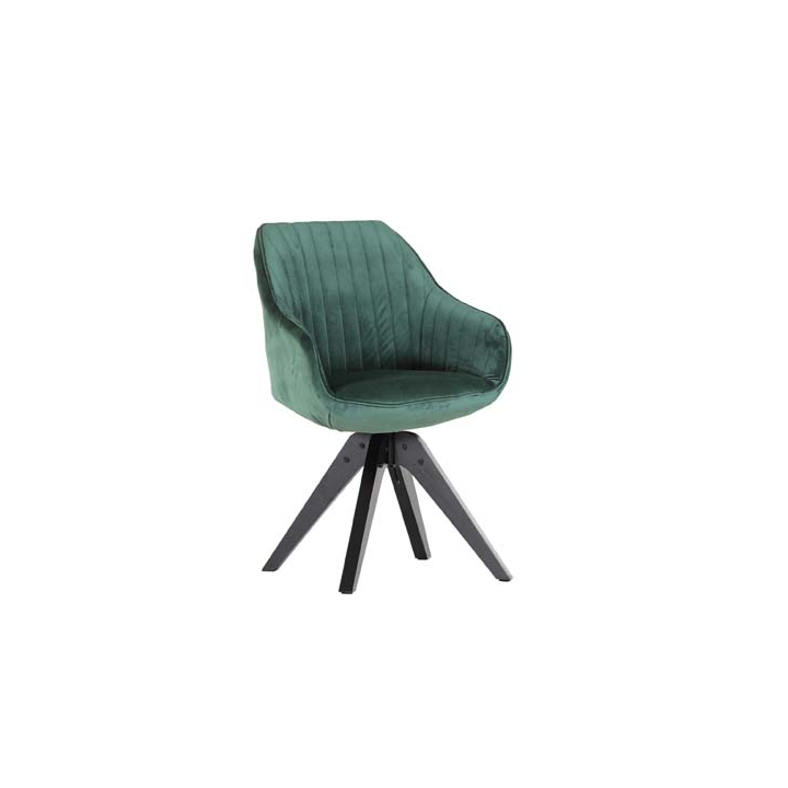 Елегантно кресло в зелена текстилна дамаска и устойчива основа изработена от масив, размери: 60/65/83 см