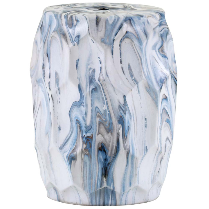 Помощната маса Керамос Марбъл е артистичен и изразителен акцент в интериора, който впечатлява с мраморен ефект в бяло и синьо и органична, скулптурна форма. Глазираната керамична повърхност придава фин блясък , като същевременно осигурява здравина и устойчивост. Компактните ѝ размери я правят идеален избор за помощна маса или декоративен елемент в помещението.